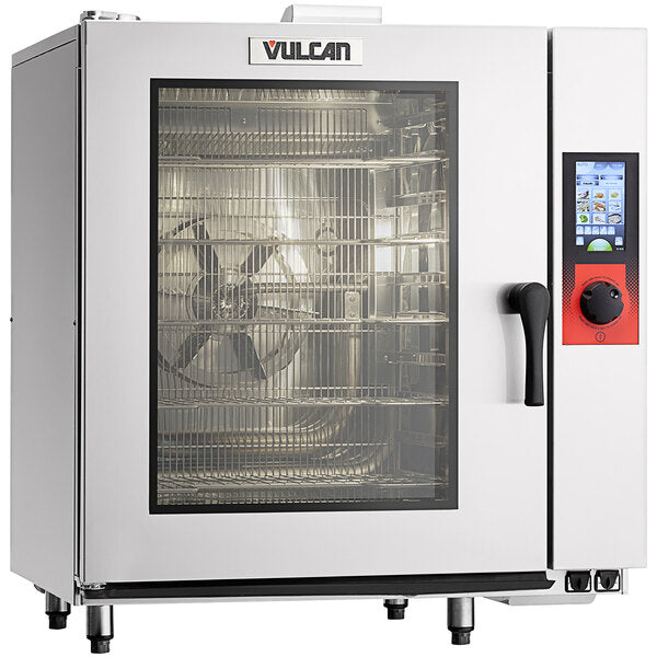 Keep customers coming back by increasing consistency and speed of service all while maximizing your bottom-line savings with this Vulcan TCM-102E-208 10 pan half size boilerless electric combi oven. A combi oven is the perfect addition to any kitchen due to their multifunctionality and quick return on investment. Not only can this piece of equipment bake, steam, roast, grill, air-fry, rethermalize, proof, finish, poach, stew, defrost, and cook and hold all in one footprint, but it will also put more money in your pocket via increased labor savings and maximum product yield.