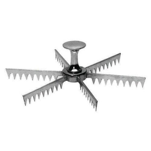 This marker is made of durable and rust-resistant cast aluminum that is easy-to-clean. Featuring thin, serrated blades, this pie marker makes perforations on top of your pastry to clearly mark where each cut should be made.