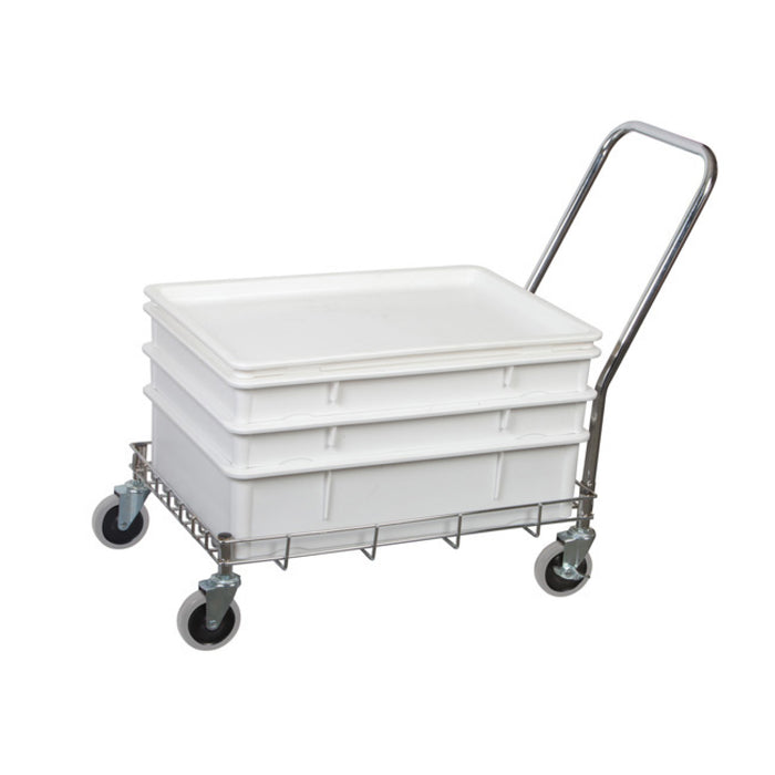 This Winco DWR-2617 Wire Dough Box Dolly is designed to save time and improve efficiency in the kitchen. This wire dolly boasts a 400 lb. capacity allowing it to carry multiple dough boxes at a time. For easy handling, this wire dolly has a built-in handle that provides a comfortable grip for excellent control and (4) 3-3/4" casters for easy maneuverability. Conveniently transport boxes of prepared dough from the refrigerator to serving line to proofing box.
