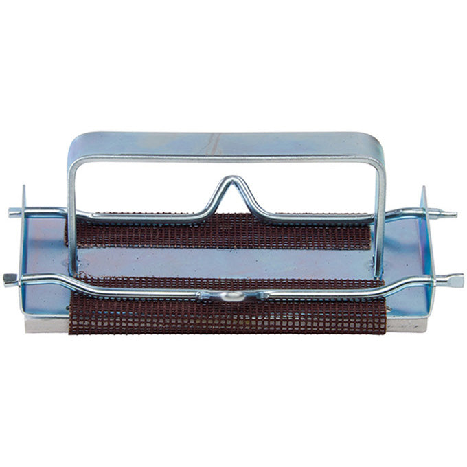 This griddle screen holder is made of durable and easy-to-clean zinc with the measurement of 5 inches in length and 2.75 inches in width. The purpose is to securely hold griddle screen. Its handle is designed for easy grip for safe and constant use. This item attaches to the griddle screen easily, and gives you more control while cleaning the griddle surface.