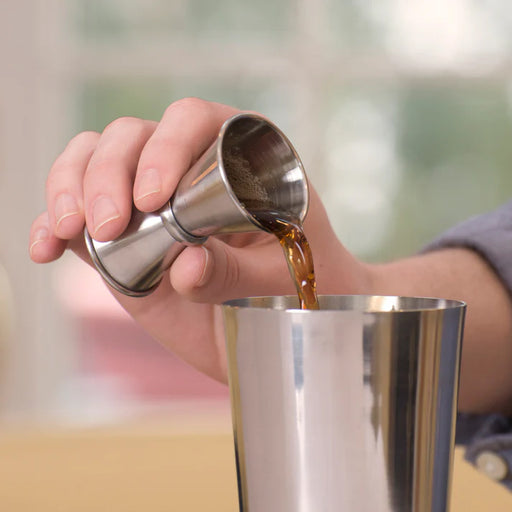 Use this Winco J-3 0.75 Oz. & 1.5 Oz. Stainless Steel Double Jigger to accurately measure ingredients, so that you can serve your guest greatest drinks.