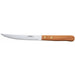 The Winco K-45W steak knife features a stainless steel blade which is 4.5 inches long. It has a serrated edge and a sharp, pointed tip to support users when they are cutting poultry, pork, and steaks. Thanks to its wooden handle, this steak knife is lightweight and easy to handle.