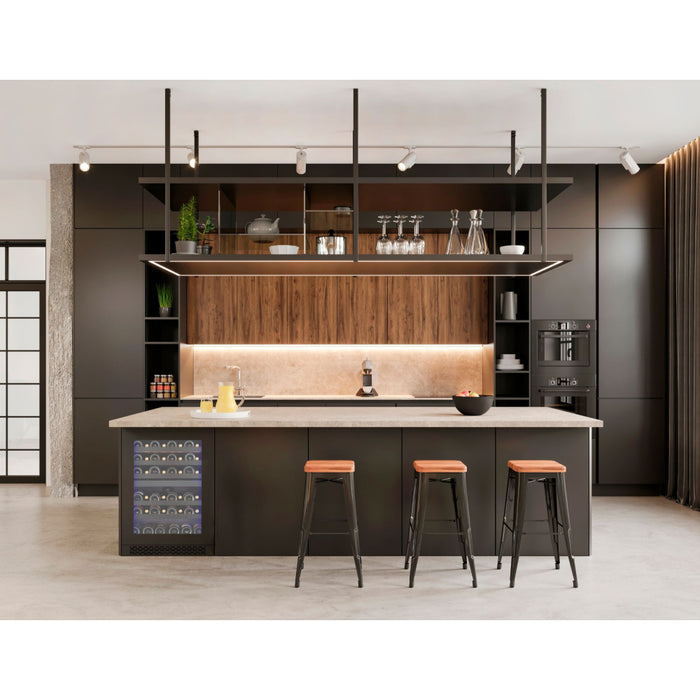 The Wine Cell'R WC46DZPRV1 24" Black 2-Zone Temperature Wine Cabinet is meticulously engineered to accommodate up to 46 standard wine bottles, providing optimal storage conditions with precision temperature control. Incorporating advanced dual-zone technology, it offers independent temperature settings in top and bottom, ranging from 5°C - 20°C (41°F - 68°F).