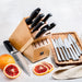 The Zwilling 8-Piece Four Star Block Combo with Bonus Steak Knives offers comprehensive utility and exceptional value, making it an ideal retail item for the high-end consumer or a professional catering outfit. Includes the crucial 8" Chef’s Knife, 5.5" Prep Knife, and 8" Bread Knife, complemented by shears, a sharpening steel, and a storage block. The set's appeal is significantly heightened by the valuable BONUS: (8) 4-Star Stainless Steel Steak Knives, transforming it into a complete cutting and dining solution ready for professional settings.