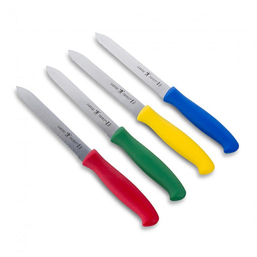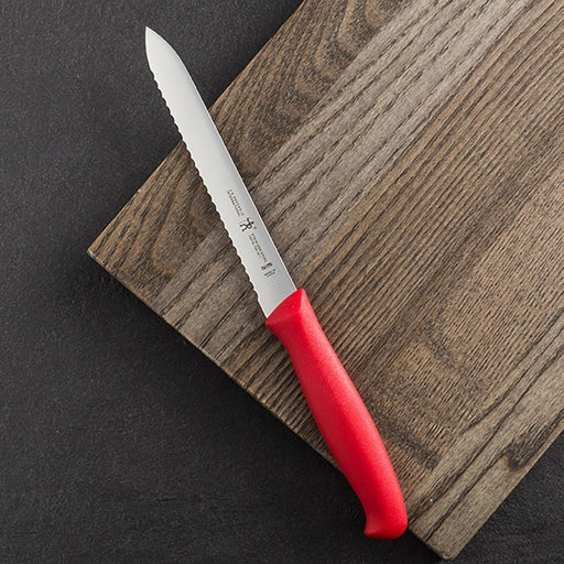 Easily cut thin slices of tomato or slice your bagel with the Zwilling J. A. Henckels Kitchen Elements Brights 5" Tomato/Bagel Knife. Sharp blade is made from J.A. Henckels International famous steel. Assorted color, sold separately.