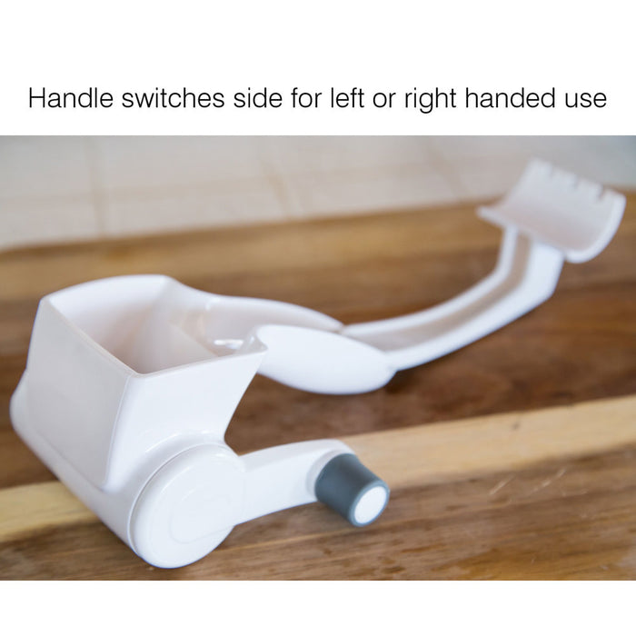 The Zyliss E900020U Classic Rotary Cheese Grater is designed to grate more cheese in less time. This cheese grater features a razor sharp steel drum that makes grating hard cheeses, chocolate and nuts an effortless process.